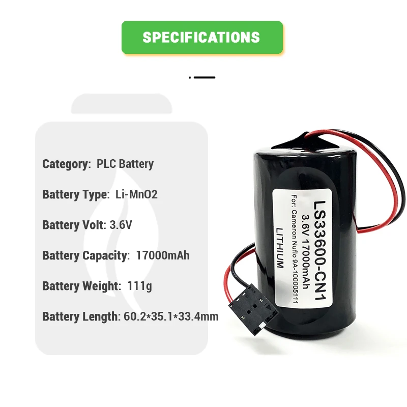 Αντικαταστατική μπαταρία υψηλής χωρητικότητας 3,6 V, 17000 mAh, MV-100005111, LS33600-CN1, 9A-100005111 PLC για αναλυτή ροής Cameron Nuflo
