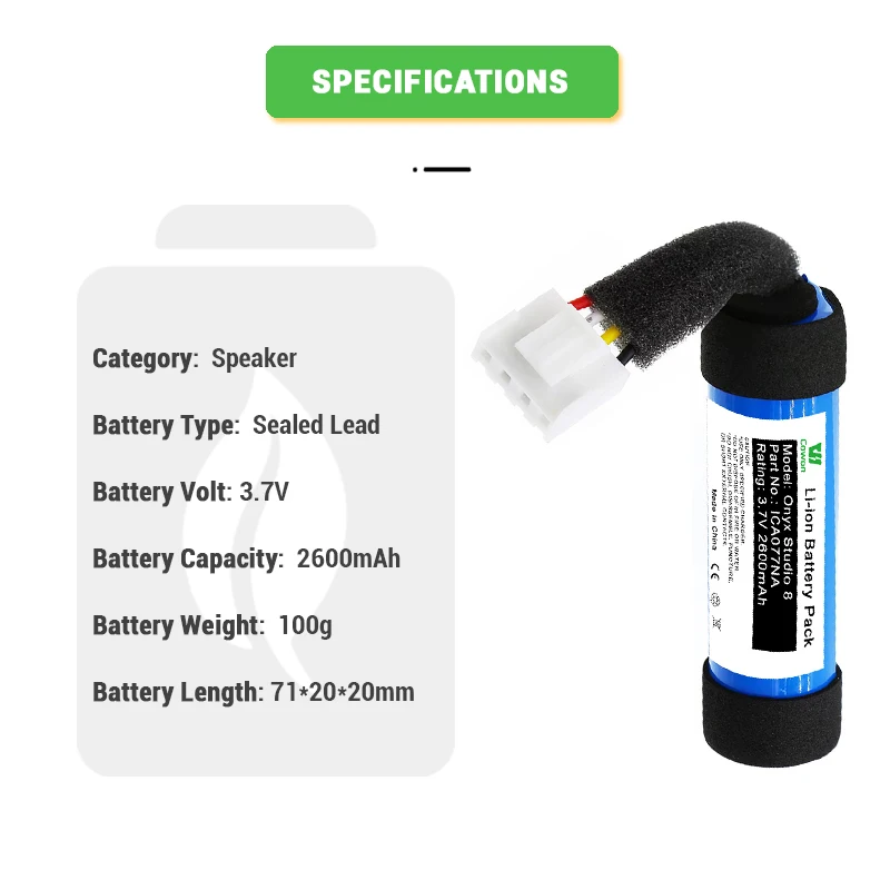 باتری لیتیوم یون 3.7 ولت 2600 میلیآمپر ساعت ICA077NA بلندگوی اونیکس استودیو 8 بیسیم بلوتوث