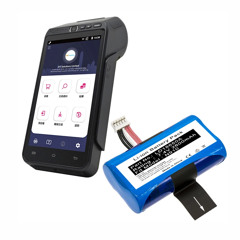 باتری لیتیوم 7.4 ولت 2600 میلیآمپر ساعت LD18650A LD18650D N910 N900 N510 برای دستگاه فروش موبایل نیولند اندروید ترمینال