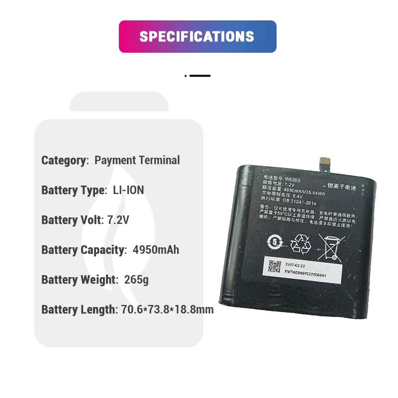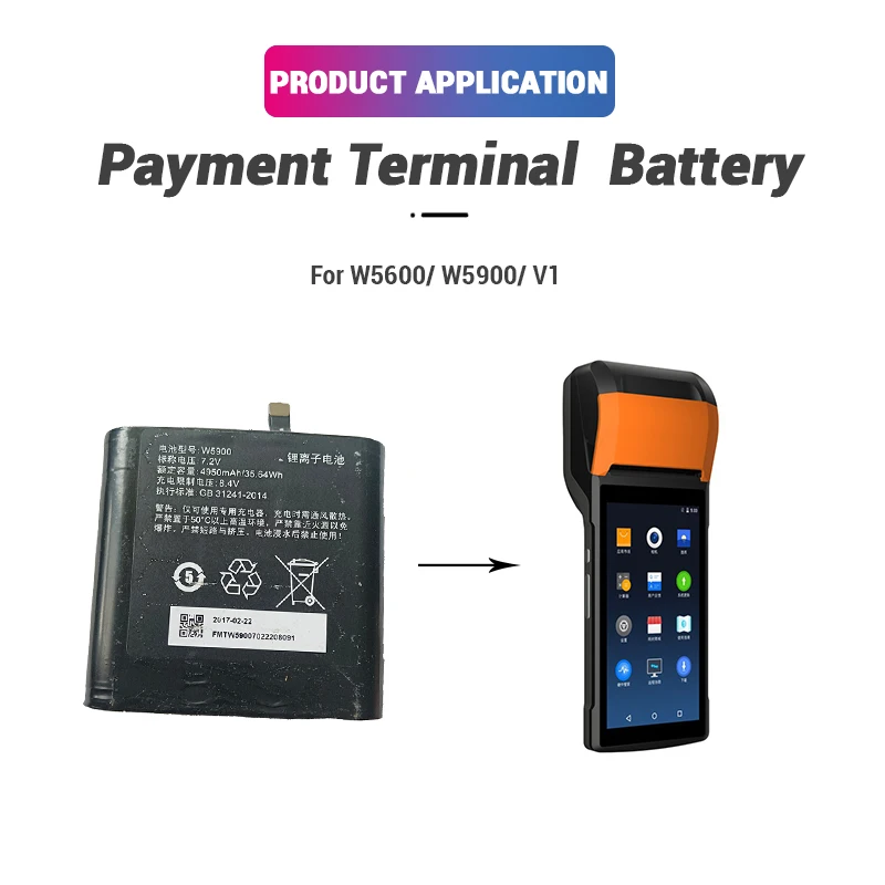 باتری ترمینال فروش 7.4 ولت 5200 میلیآمپر ساعت W5900 برای Sunmi V1 WT5600 بسته باتری لیتیوم یون