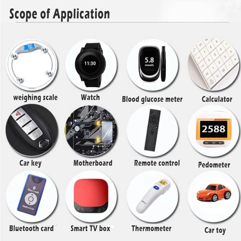 Widely utilized in everyday devices, including calculators, remote controllers, clocks, electronic watches, electronic dictionaries, laptop BIOS systems, and payment terminal backups.