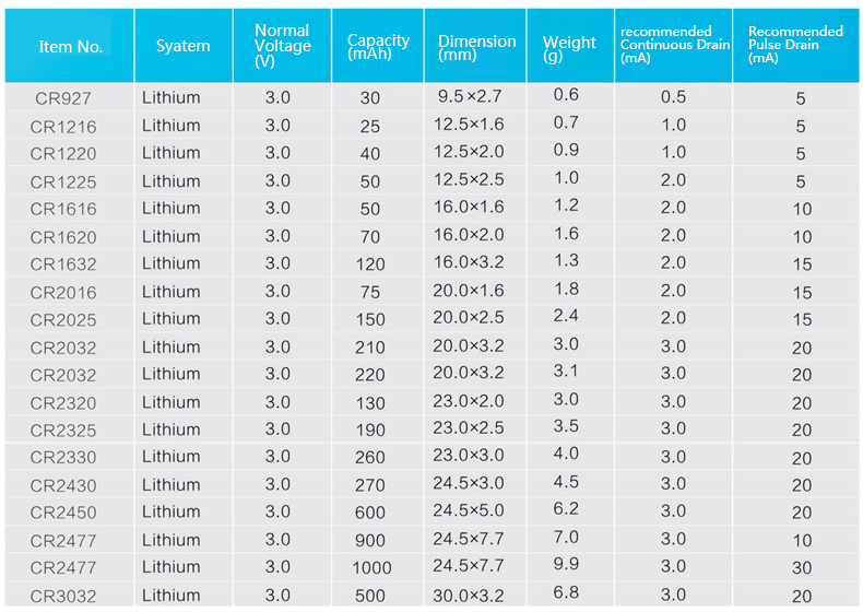CR Lithium Button Cell Batteries: