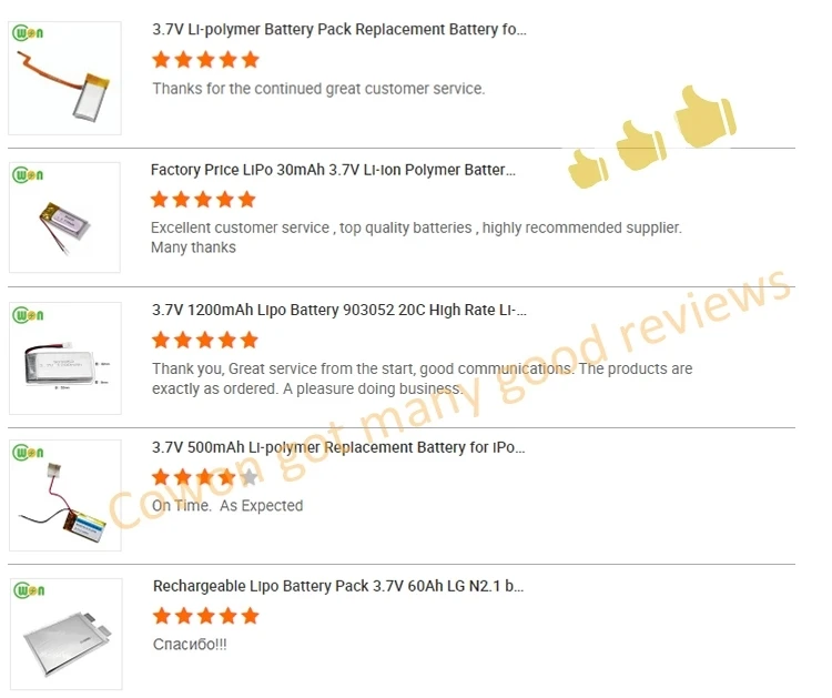 深セン・コウオン・テクノロジー有限公司(設立:2008年5月) 当社は、リチウムポリマー電池セルおよびパックをはじめ、その他の各種電池セルおよびパックを幅広く取り扱う企業の一つです。当社製品は、時計、電卓、ポータブルコンピューター、電子キー、カメラ、ビデオカメラ、電力メーター、携帯電話、PDA、ノートパソコン、懐中電灯、掃除機、非常用照明、RCモデル、通信機器(携帯型無線局、GPS機器、デジタル端末装置)、電動工具などに広く使用されています。