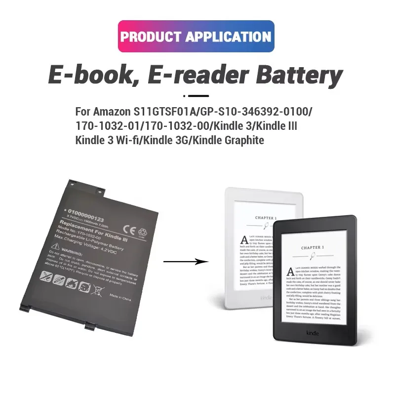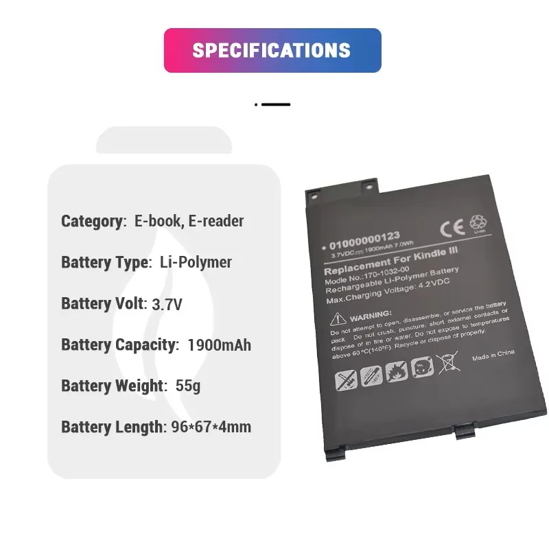 Li-PO 3.7V 1900mAh GP-S10-346392-0100 170-1032-01 170-1032-00 E-book E-reader Battery for Kindle 3 III