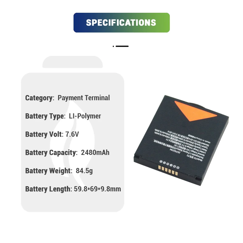 Li-polymer 7.6V 2480mAh Sunmi P2 POS Terminals Battery