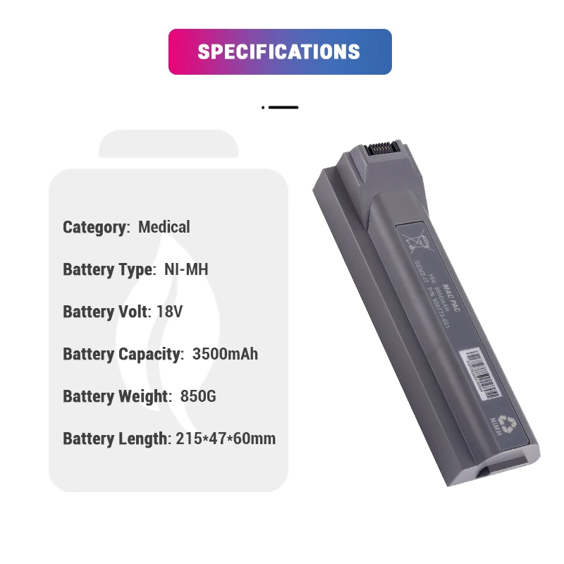 Ni-MH 18V 3500mAh 900770-001 Medical Battery for GE Mac3500