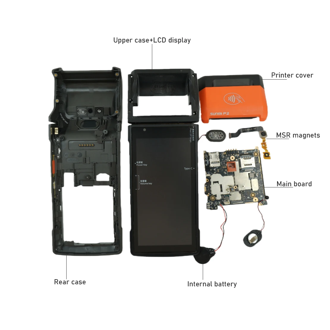 Payment Terminal Accessories Sunmi P2 MSR Magnets Printer Cove Roller LCD Display Upper Rear case Battery